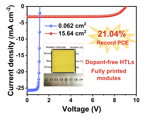 基于此策略的钙钛矿太阳能电池(0.062 cm2)和大面积全刮涂组件(15.64 cm2)分别实现了24.46%(认证效率24.30%)和21.04%的纪录光电转换效率(PCE)。同时,该策略在扩展器件规模方面展现出显著优势,并且器件表现出强大的运行稳定性,T90超过1200小时。