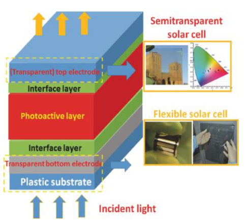 柔性半透明有机太阳能电池(OSCs)被认为是在可穿戴能源和建筑集成光伏中最有前途的光伏器件。因此,通过开发新型柔性衬底或顶部透明电极、设计和合成高性能光活性层和低温加工电极缓冲层材料以及器件结构工程等方面的协同努力,柔性和半透明OSCs近年来得到了迅速发展。迄今为止,柔性OSCs的最高功率转换效率超过10%,半透明OSCs的平均可见光透过率为37%,达到7.7%。本文综述了柔性半透明OSCs的相关材料和器件的最新研究进展及展望。
